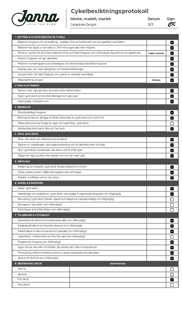 Cykeln har endast gått 100 mil så nu är den kört in, någon repa här och där ett slitet handtag men annars i riktigt fint skick