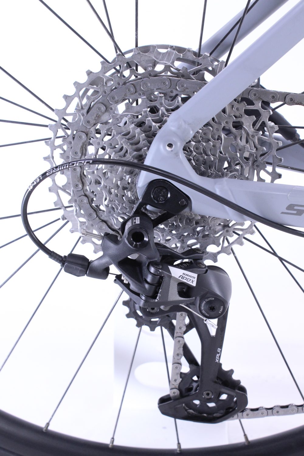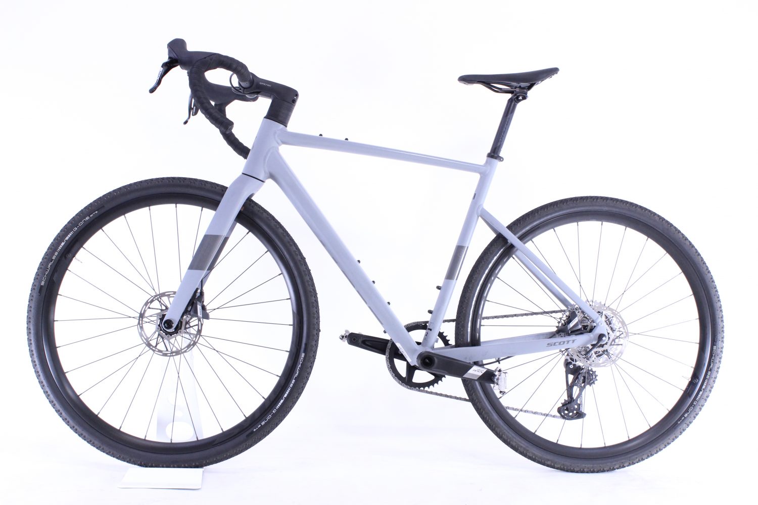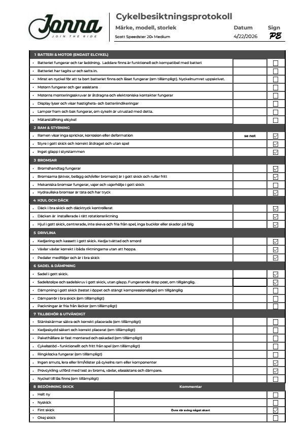 Cykeln har några kosmetiska repor och en liten skada på styret, annars i fint skick